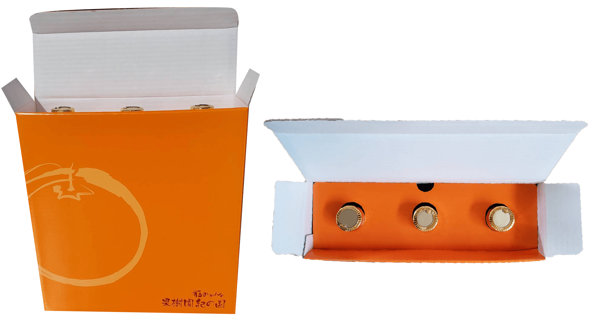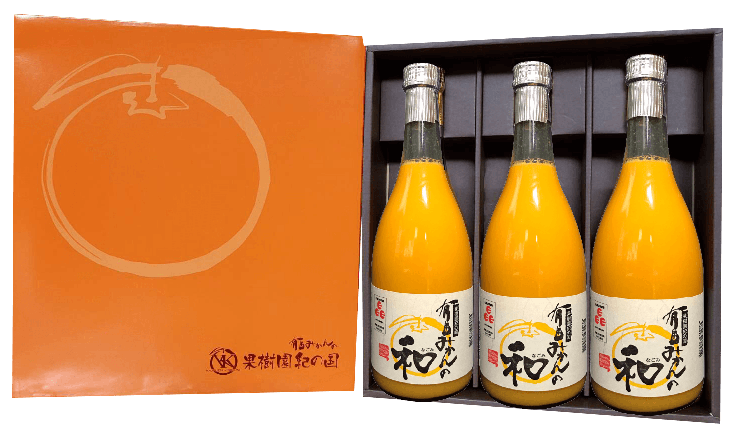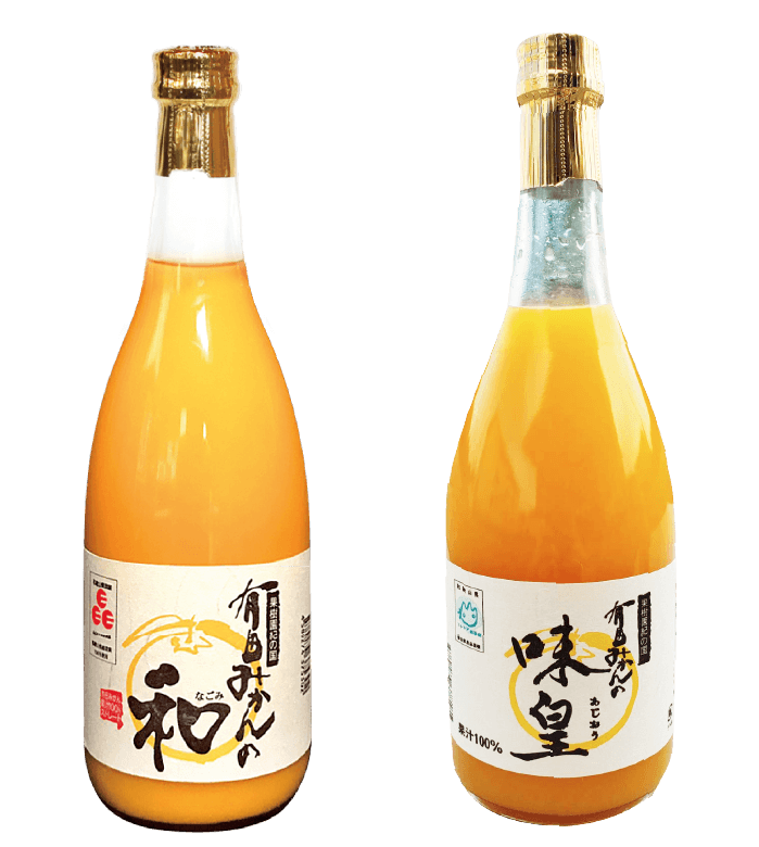 有田みかんそのものを十分に味わえるように贅沢な搾り方をした「味皇」と、まろやかなとろみ感と濃厚なうまさの「和」がセットになった人気商品。贈答用にもおすすめです。
