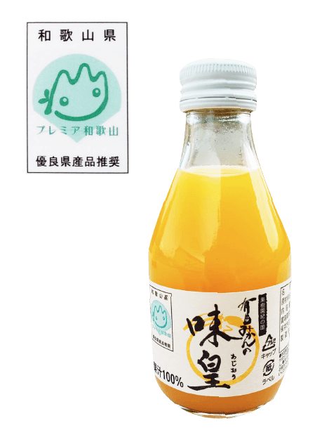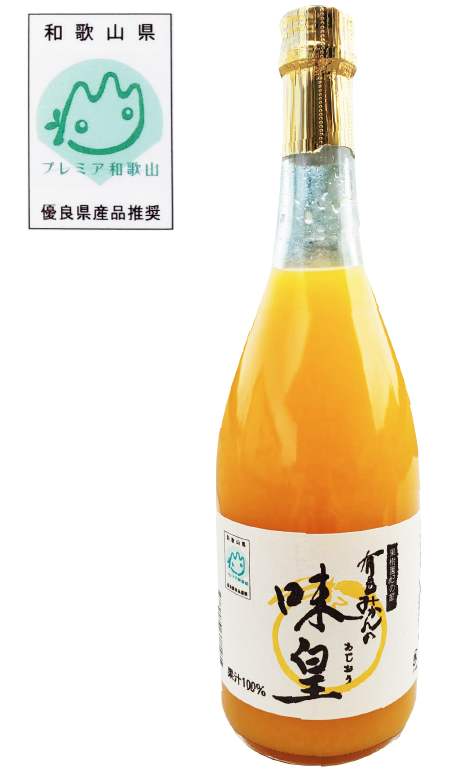 こだわりの和歌山産有田みかんのみを集めたこだわり農家の味つくり。本物の味を作りたい、本物の味をお届けしたいと、有田みかん農家が集まり「味皇」と言うブランドを誕生させました。日本一のみかん産地有田!有田みかんそのものを十分に味わえるように贅沢な搾り方をしたストレートジュースです。味皇ブランドとして日々進化をしつづける、みかん農家の自信作。 創業して10年以上経ちますが、2021年度産のみかんはこれまでにない甘さで、最高品質のみかんジュースに仕上がりました。 糖度は12度以上で、例年より甘く濃厚な味わいですので、この機会に是非ご賞味ください。 『プレミア和歌山』 「プレミア和歌山」は、安全安心を基本とし、申請要件を満足した上で、”和歌山らしさ””和歌山ならでは”の視点で評価され、生産者のこだわりや創意工夫などのストーリー性を有する優良県産品です。 〝和歌山県が誇るもの〟です!